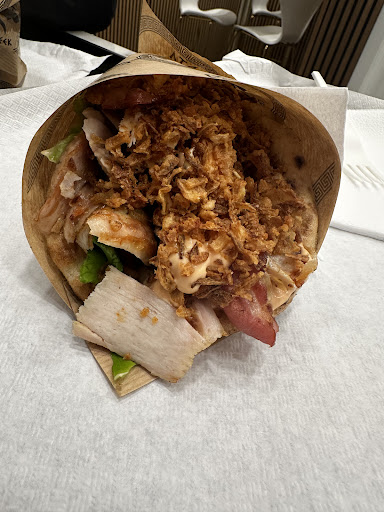 Read moreDi greco ha veramente molto poco, solo i nomi sul menu. Cosa c’entra la salsa rosa col souvlaki? Hamburger… sarebbe bifteki ma non è insaporito con le spezie apposite. Lo tsatziki è un lontanissimo patente (tipo lo zio d’America) di quello “vero”. Anche la feta ne trovo di migliori al supermercato “generico”. Meglio portare via o utilizzare glovo perché il locale è stretto, 2 vetrine su strada, si condividono i tavoli (mitica la faccia della turista del nord quando si è resa conto che doveva sedersi al tavolo con me, non avendomi visto prima di girare l’angolo di fronte al bagno). va bene come fast food fuori dal casino del Vaticano, ma veramente niente di più. Molto ma molto meglio il competitor a 1 km…