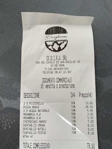 Ripeto peccato per i prezzi come vedete dal conto allegato. Sono esagerati rispetto al contesto urbano e rispetto alla concorrenza altrimenti sarebbe diventata la mia pizzeria preferita per impasto e cottura!