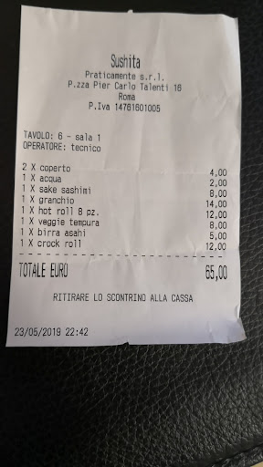 Allora, il posto è molto carino. C'è l'atmosfera giusta e ricercata. Il personale è cortese e ti aiuta anche nella scelta di alcuni piatti che poi si riveleranno più buoni di quelli scelti da te. C'è la sala esterna climatizzata che trovo perfetta per una cenetta romantica, all'interno cucina a vista, tavoli luci soffuse e un piano superiore che non ho avuto modo di vedere. Ma la domanda vera, e che io stesso non ho trovato nelle varie recensioni on line è: cosa aspettarsi? Presto detto. Sushita così come si intende dal nome, è un ristorante giapponese con alcune differenze sostanziali. Innanzitutto è gestito da italiani, mentre nella cucina spadroneggiano due o tre abili ragazzi asiatici. La ricca carta del menù così come quella variegata dei vini è ben rappresentata da cover in legno chiaro e con uno stile che è completamente diverso dai vari ristoranti giapponesi presenti in città, mentre invece i piatti proposti assolutamente in linea con quanto siamo stati abituati negli anni. ok...ma quindi? Cosa cambia? Probabilmente cambia che non c'è l'opzione"All you can it" , poi cambia la qualità del cibo proposto, o almeno, quel che ho provato era davvero buono. E questo credo che sia la cosa più importante. Cambia il modo di rappresentare alcune cose del tipo: la bottiglia dell'acqua personalizzata, la soya proposta in una elegante bottiglietta, ...le bacchette sono in legno classico da dividere...poi come dicevo luci soffuse... Però attenzione, a cambiare sono anche i prezzi, parecchio più alti rispetto ad altri... e quindi tirando le somme, a cosa serve un ristorante in stile fusion giapponese elegante nella sua espressione nel quale due persone tenendosi anche strette con le ordinazioni spende quasi 35€ a testa? Badate bene, non lo sto sconsigliando, sto solo cercando di far chiarezza e far capire a chi leggerà questa recensione cosa aspettarsi una volta entrato e seduto da sushita, e questo perché quel che ho letto io, e riporto testualmente, " cibo ottimo con qualche spiccio in più ", mi sembra abbastanza riduttivo. Così come riduttivo sono le due €€ che trovate in classifica. Allego foto del mio scontrino e buon...