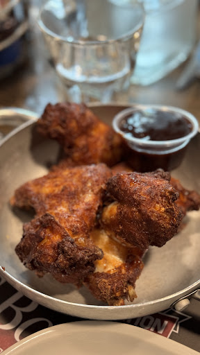 Read moreI was craving for steak and this was the only restaurant opened early, so I went for it. The restaurant was roomy, suitable for big group with comfy booth seatings. However, I was really disappointed at the food here. -Chicken Caesar Salad 6/10 - big chunk of dry and salty chicken -Wings 7/10 - salty Brown rice bowl with salmon and veggies 8/10 - salmon was overcooked. It was very dry that I couldn’t swallow both of the Ribeye and T-bone were impossible to eat - very rubbery and tasteless. It was supposed to come with side dish per our server. I chose French fries but it never came with my steaks. When I was able to flag down another staff to ask about it, she insisted it didn’t come with side dishes and we had to pay extra….