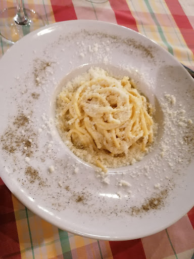 Cena per due, venerdì sera; accolti da un servizio molto cordiale abbiamo preso due bruschette, una carbonara, una cacio e pepe, involtini e vitella con contorni, un tiramisù e una bottiglia di Pecorino: le bruschette sono l'unico motivo per cui non posso dare un voto pieno alla qualità, in verità erano un po' troppo bruciate all'esterno, la burrata su quella con mortadella non era cremosa e pareva più mozzarella, il lardo sull'altra me lo aspettavo crudo, un prodotto di qualità tagliato così è un po' un sacrilegio cuocerlo; per il resto carbonara da urlo, cremosa con guanciale croccante e pasta al dente, cacio e pepe spettacolare, molto cremosa con pecorino non troppo stagionato come è giusto che sia, pepe schiacciato e tostato e pasta al dente; gli involtini erano dei saltinbocca rivisitati, accompagnati da zucchine marinate, decisamente molto gustosi; la vitella alla fornara si scioglieva in bocca, squisita, accompagnata da cicoria ottimamente ripassata; tiramisù delizioso. Il tutto spendendo meno del giusto, in un ambiente rustico molto accogliente a ridosso dell'acquedotto romano che, complice la luna piena, ha prodotto uno spettacolo decisamente emozionante! Grazie,...
