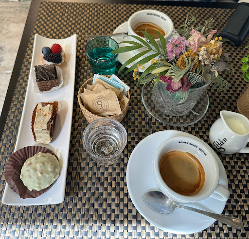 As you can see in the pictures, we had the same order 2 times because we really liked it. But we were stupid enough not to ask for the prices before. We had 4 x espressos (with a little bit of milk on the side), 8 x one-bite sweets, and 1 x bottle of water (0,5L). All of that for 47€. That is way too expensive, even if the bar is located just near the Via del Corso. The coffees were great, as well as the sweets, but these prices are absolutely REPELLENT. It's a shame, because the lady that presented the sweets, our waitress, was really kind, really sweet, but because of the prices we won't sit there ever again. This is pure hospitality rudeness.