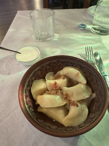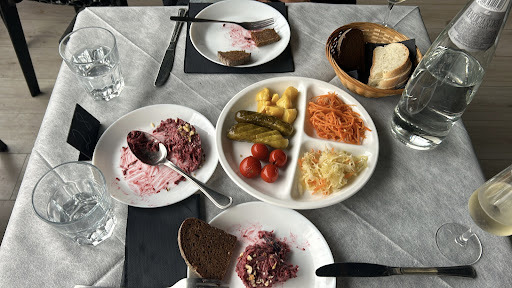 In a hidden spot in Rome, you can find a charming Ukrainian restaurant. I was especially touched by the tenderness, sincerity, and care of the people who work there. My friend and I happened to be there on March 8, and we were immediately treated to a glass of prosecco with a blueberry, which made us endlessly happy. Our mood instantly improved. I still remember the delicate taste of the beetroot salad—I think I’ll be dreaming about it. As an appetizer, we also had a platter of marinated vegetables. My friend ordered borscht with meat. The only thing I could wish for is a vegetarian version, as I don’t eat meat, but I really want to try borscht. I had dumplings with cabbage, and they melted in my mouth like in the movie The Night Before Christmas. But once again, I want to highlight the hospitality! I will gladly come back again—especially to have borscht without meat. Thank you!