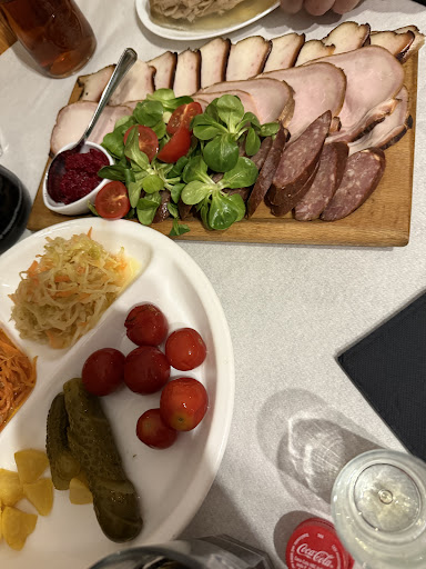 Abbiamo mangiato: Per antipasto -un tagliere di salumi ucraini affumicati(tra l’altro affumicati proprio da loro) per 2 persone,mooooolto buono!!!💝💝💝💝 I Primi -2piatti di ravioli : l’ uno,con lardo e patate e l’altro,con carne di vitello (Quest’ultimo strepitoso!!!!Consigliatissimo)❤️❤️❤️❤️ I Secondi Una grigliata di carne affumicata con verdure che era qualcosa di sbalorditivo per la bontà sovrumana!!!!😍😍😍😍 Il dolce Un dessert a base di ricotta e cioccolato da fare invidia per quanto era buono💝 Birre ucraine(quella scura non filtrata e quella alla ciliegia,sempre superlative) Caffè e un liquore alla ciliegia strabuonissimo di produzione del ristorante e gentilmente offertoci dal personale super gentile e accogliente🌈🌈💝💝💝💝 Avevo passato una giornata un po’ storta e invece in questo posto ho recuperato tutte le mie energie e il buon umore,ci torneró...