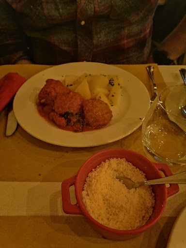 Went here twice. I'll start with the food. The dishes I've tried were: ragu with pasta, white ragu with spaghetti, meatballs with potatoes, duck marinated in vinegar, avocado salad, chesse platter, bruschette with 4 diferent toppings. Everything except the main dishes was great. The main dishes were not to my taste and lacking a lot in flavour and spices. For my taste everything was too bland and basic. It was well prepared but I barely finished my plate. I think that the combination of ingredients and flavor is out of balance. My main concern is that when I was with my colleague it was pouring outside and the waitress rushed us out after we just finished our meal. The restaurant was emptyish and there was no need to kick us out in such a hurry only because of the rain. In a lot of countries that you might get visitors from, it's very rude to kick people out of the restaurant just after they finished their meal not to even have time to relax after a meal. Definitely want to point out such behavior. One more thing I've missed is that the meals are more affordable than the rest of the restaurants around so, if the kicking out part would get solved I would...