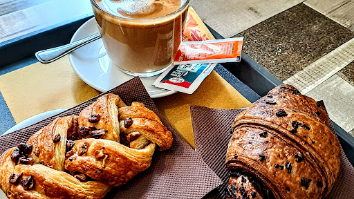 Io sono rimasto senza parole di fronte al sapore vellutato e veramente strabiliante del cornetto con cioccolato Sacher scelto per la mia prima colazione. • amato...