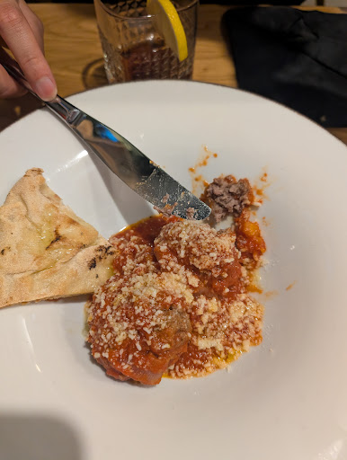Positives: The interior is nice and was air conditioned Service is ok, nothing notably good or bad. I did like that they cleared our plates and utensils after each course. I would describe the service we received as just trying to get the job done without caring about our experience. They would clear our plates when we flagged them over but if you ask for recommendations or questions it was a no go. Meatballs were good. They were two large meatballs and full of flavor Truffle carbonara flavor was great. A very delicate truffle flavor that was infused with the sauce