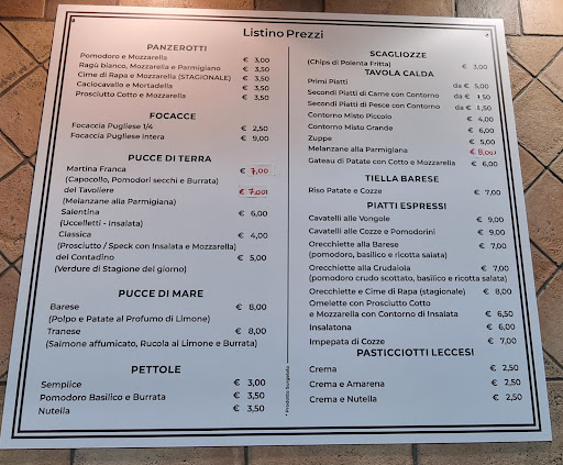Read moreSpecialità pugliesi e in particolare baresi. Focaccia barese da 8, ben fatta e appena un gradino sotto a quelle dei migliori locali di Bari come Fiore o Magda. Per i panzerotti stesso discorso, quelli con pomodoro e mozzarella forse sono i migliori tra tutti quelli provati nella capitale; gli altri gusti, vale anche per le migliori proposte in generale degli altri locali, dipendono molto dalla qualità degli ingredienti e spesso lasciano un pò di delusione (accade in particolare con le cime di rapa). Altro piatto tipico pugliese, la cicoria col purè di fave, era da 7, buono di sapore mentre la consistenza del purè era troppo liscia (forse lavorata col mixer?) sembrava quasi una vellutata. Pasticciotti da 8, molto gustosi e fatti a regola d'arte; per la perfezione servirebbe una pasta appena più spessa (pasta comunque dal sapore eccellente) e la crema potrebbe essere leggermente meno dolce e quindi meno pesante. Il locale è piccolo e semplice...un pò di tavolini sia dentro che fuori dove appoggiarsi a consumare. Servizio un pò nervosetto, sarà stata una giornata no, cosa che può capitare. Varrà la pena tornare per assaggiare anche altre specialità tipiche come la tiella barese (riso,...