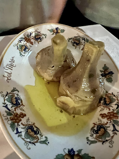 I also noticed soon on the wine list a bottle of Emidio Pepe's Trebbiano D'Abruzzo, which I've had a couple of times before and loved. So thought we'd kick off with that as a treat. An interesting thing happened that because of my high of arriving, I started filling in the blanks with what the wine usually tastes like. After a second glass, it soon realised that this wasn't just 'still opening up' but was in fact fully corked.