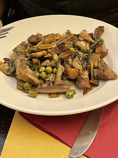 Well… Just my personal opinion: not restaurant food at all. It’s something you expect to try visiting relatives living far away and not very keen on cooking. Maybe that was the point - “grandma meal “, which is preparing for the large group of people without strong concern about taste or flavour. All food in this trattoria we tried was prepared in advance, with I assume the same scenario: find some meet and veggies in the kitchen, chopped all in pieces and kept several hours in oven. Both dishes we ordered were oversalted, broiled , presentations is missing obviously. On the plus side- service was great, house red wine was great and served with the right temperature...