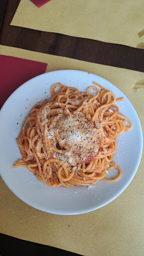 Read morePranzo nel fine settimana, con menù fisso a 5 euro a persona: primo (amatriciana), acqua e vino, caffè. Ottimo in rapporto al prezzo economico. Non c'è possibilità di scelta, ma comprensibile. Peccato per la mancanza di comunicazione dei camerieri, che non parlano, non spiegano assolutamente il funzionamento del servizio, riportato semplicemente su una lavagnetta, portano il piatto senza fiatare e portano il caffè con ancora il primo in tavola. Insomma, consigliatissimo per un pranzo tranquillo, abbastanza rapido e sicuramente economico. Peccato per il servizio, ma nulla di grave.