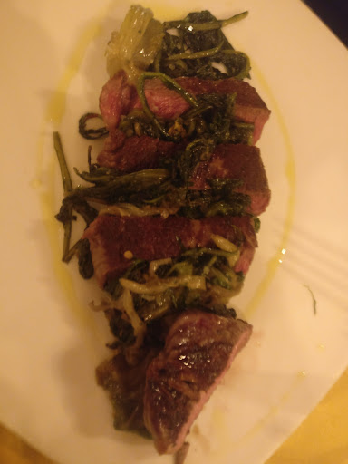Read moreDistratti ma creativi è la espressione che definisce meglio questo locale. Probabilmente sono capitato in una serata non felice ma cercherò di essere obiettivo su tutti gli aspetti. Giovedì sera ci rechiamo in questo posto e telefoniamo per prenotare ma non risponde nessuno. Quando arriviamo chiamiamo il personale ma nessuno si presenta immediatamente obbligandoci a richiamare a voce più alta. La cameriera, sicuramente molto gentile, non comprende (ce lo dice cortesemente) la nostra richiesta di avere una tagliata croccante fuori e al sangue dentro ovvero con una caramellizzazione esterna e shock termico esterno che garantisca carne umida all'interno. Per cui alla fine il mio amico ripiega su una tagliata a cottura media, facilmente comprensibile. Costo €17. La tagliata alla fine è morbida, ma non stupisce. Io prendo un maialino croccante con arancia e mandorle. Purtroppo il maialino viene servito asciutto ovvero la carne non mantiene la sua umidità interna come invece il maialino necessiterebbe. La crosta esterna è altresì un pochino gommosa se comparata al più classico maiale porchettato. Il succo d'arancia alla fine risulta una semplice decorazione del piatto e non si integra con la carne. €17 il costo. L'antipasto che si divideva in due persone è il "magnoforte", dal costo di €24 è composto di 4 portate ovvero due polpette al sugo, uno sformatino di cicoria con crema di cacio, un mini tagliere di salumi e formaggio, due fagottini di melanzane alla parmigiana accompagnata da burrata di Andria. Polpette morbide come devono essere, interessanti ma senza colpire particolarmente. Ottimo sformatino di cicoria con crema di cacio, abbinamento che riprendono anche sulla pasta che non abbiamo assaggiato, il miglior piatto che abbiamo provato. Interessante l'accosta mento caldo-freddo della parmigiana con la burrata di Andria, ma la pasta fillo con cui hanno fatto il fagottino invece di rendere un accostamento croccante morbido andava a creare una sensazione di gommosità nel piatto. Selezione di salumi molto basica e senza pezzi particolari, formaggio insapore. Il proprietario del locale è stato molto gentile offrendoci un assaggio di Chips sedano rapa con coulis di pomodoro e cioccolato (curioso, ma mancava di croccantezza) e un pezzettino di crostata con ricotta e visciole (buona ma la ricotta conteneva troppo zucchero). Buona l'offerta della birra basata su birrificio "na biretta" di Ostia. Costo finale 70 euro in due. In sintesi un locale che ha le potenzialità per crescere vista la creatività della gestione ma che per ora risulta distratto su elementi basici della ristorazione. La sensazione alla fine infatti è stata quella di aver speso troppo per avere piatti che stupivano ma non convincevano. Suggerimento: meglio poco è bene che tanto e meno bene. Ci tornerò per verificare se sono migliorati col tempo oppure se si sono...