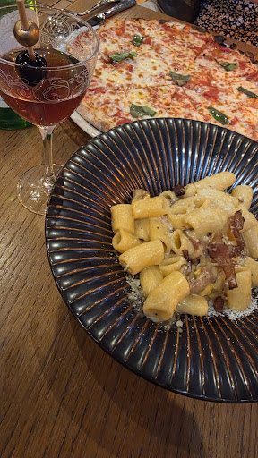 The drinks were great: we got an amaretto sour and a manhattan. Both were done very well. There are many places where you can only drink wine or beer. I'm more than happy to try new things, but on the fourth day of our trip, I wanted my go-to cocktail. The food was amazing. We weren't starving, so we wanted just a couple smaller things. We got a Margherita pizza and pasta carbonara. Both were excellent. There's something about the bread in Italy... its so much better than in the US. We actually ordered the perfect amount. It ended up being pretty generous portions, but we managed to finish it all. Highly recommend the pasta we got. It was rich but so delicious and not heavy in the stomach. We didn't feel sick or too full after. We didnt save room for dessert, but I'm sure its delicious here.