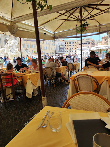 Popped into this place due to convenience of being a main restaurant on the square however wish we had researched a little first. Prices were really steep compared with other eateries down some of the side streets with no benefits to justify it. Service did not feel warm or accommodating as per other places we had visited in Rome. Order was taken and drinks were a shambles. Only wanted 1 pint of Peroni and 1 tap water. They delivered a bottle of water to the table and stated that tap water wasn’t available (so this was to be paid for). Then 5/10 mins passed without sign of my beer so I kindly asked them about it and he shortly returned with a small bottle of Peroni instead of a pint. I didn’t correct them as they seemed insulted that I’d reminded them in the first instance.