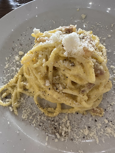 As soon as I get back from the bathroom and BEFORE I could even sit down, he came up to me asking what I will be ordering. Like… I haven’t even seen the menu yet but luckily for him and myself I already knew what I wanted; a Carbonara and Aperol Spritz. They were both not bad at all. So not much complaints about the food. When I got the check he IMMEDIATELY pointed out that the check didn’t include a service fee, so obviously he was expecting a cash tip. Red flag. The Carbonara was 15 euro and the Aperol was 10 euros. I’ve never seen an Aperol so expensive in Italy, not even in Positano in the Amalfi was it 10 euros, close but still under 10 euros. So maybe they overcharged on some items that actually reflected the service fee but stated there was no service fee to scam. No idea but overall I wouldn’t recommend this restaurant to anyone unless you feel like you want to be stressed or scammed in some way. But if you’re in dire need of food and starving and can’t find another establishment then by all means, the food isn’t terrible. I read another review that said they had to pay cash only, they DEFINITELY accept credit card.