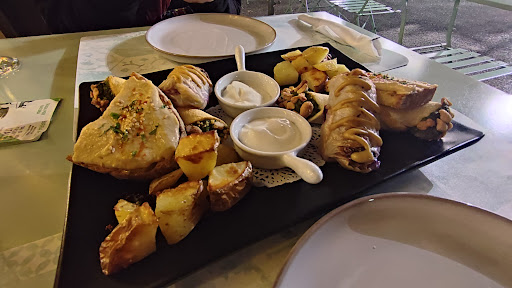 The sides were nice but not spectacular, and the sharing platter was also nice. The spinach roll with baked peanuts was a treat.