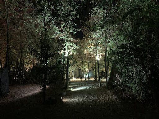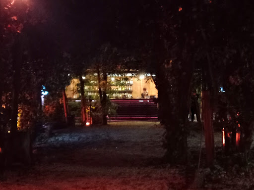 Il parco è molto suggestivo, stare seduti in mezzo al verde è senz'altro una bella esperienza, ma potrebbe essere migliorabile. Noi ad esempio non avevamo un tavolo ma poggiavamo il cibo e i bicchieri sui ceppi di due alberi. Purtroppo erano inclinati, e su uno di questi era praticamente impossibile poggiarci qualcosa, quindi chi stava da quella parte ha dovuto tenere i bicchieri in mano per tutto il tempo perchè l'unico posto "piano" era occupato dai taglieri. In oltre una parte era completamente al buio, tanto che era difficile vedere anche cosa si stava mangiando.