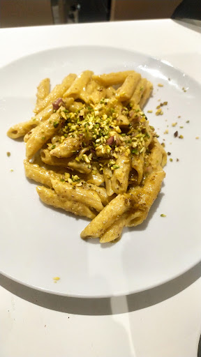 Read moreBen organizzata l'accoglienza: personale giovane, gentile e attento. Rapidamente ho avuto un tavolo per 2 e mi è stata spiegata la modalità di ordinazione col tablet e i costi con la nota formula "all you can eat", cioè prezzo fisso, ieri sera, un giovedi, di 11€ bibite e dessert esclusi. Chiaro il funzionamento e dai ben ordinati menù sul tablet, si capisce immediatamente cosa ha un supplemento e cosa non è incluso nella formula. Dopo aver avuto rassicurazioni sui tempi d'attesa, ho ordinato subito patatine, pepite di pollo, panelle e inviato l'ordine. Immediatamente dopo ho ordinato una pinsa, una pizza una coca e una birra. Dopo breve attesa sono arrivate le fritture, ottime, e le bibite (la coca zero da 20cl invece dei 33 da menù). Poi è cominciata un attesa infinita forse dovuta alla presenza di una enorme tavolata per un festeggiamento (per questo (solo) una stella in meno). Con un attesa simile il "all u can eat" perde un po' la sua valenza! Comunque, pure per ingannare il tempo ho ordinato delle penne alla crema di pistacchio e spek, essendomi parso che fosse il forno (a legna e a vista) ad essere super-impegnato. Ma niente. Attesa. Penso almeno 45 minuti dalla portata dei fritti. Finalmente: la pinsa capricciosa mi è piaciuta moltissimo e anche la pizza primavera, nulla da dire. Fra i due impasti ho preferito quello pinsa. Quando stavo per finire questa portata è arrivato anche il primo piatto che ho gradito moltissimo, anche se la qualità della pasta forse non era eccelsa, un po' gommosa all'esterno, forse anche perché rigata (con questo condimento, denso, andava liscia). Al conto nessuna sorpresa, ma già col tablet i prezzi erano chiari! I due menú, 2€ la bibita, 3€ la Ceres piccola. Ci torno per vedere se l'attesa esagerata è stata un caso... Aggiornamento. Ci sono tornato varie altre volte e niente attesa. Tutto sempre buonissimo. Quindi adesso le 5 stelle ci...