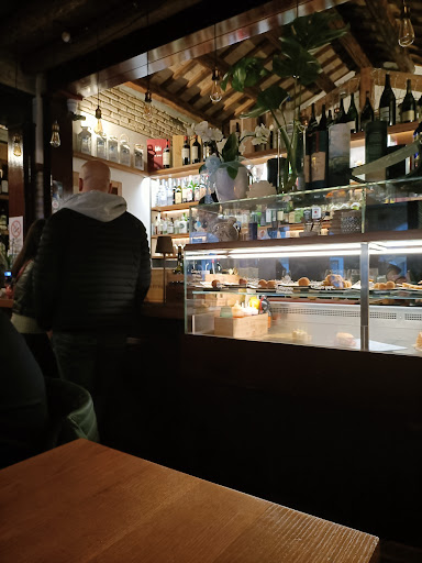 Read moreBel locale, che serve buon vino ed ottimi cicchetti ma il personale molto freddo non aiuta ad apprezzare l'ambiente. Mi riferisco soprattutto al barista con i capelli rossi che ha servito me ed il mio gruppo di amici, quando arriva il cliente o viene al banco per ordinare lo si saluta, quando ti paga o ti riporta il bicchiere vuoto per ordinare ancora, lo si ringrazia, quando va via,lo si saluta nuovamente e gli si augura una buona serata...ah e in linea di massima si sorride... Sono giovani, spero che questa mia gli serva come spunto per...
