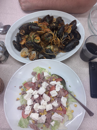Il menu propone una deliziosa selezione di piatti tipici di pesce , realizzati con cura e passione utilizzando ingredienti freschi e di alta qualità. Abbiamo iniziato il nostro pranzo con un primo spaghetto allo scoglio , molto abbondante , squisito il condimento ma la pasta era un po’ scotta, grigliata di pesce molto abbondante Per il secondo, la bistecca alla fiorentina non ha deluso le aspettative: cotta al punto giusto, tenera e succulenta, è stata accompagnata da contorni di verdure fresche e saporiti.