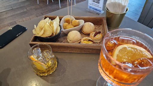 Read moreCaffetteria molto accogliente, calda, arredamento misto tra tavolini semplici ad un mega tavolo da 8-10 posti rigorosamente in legno, posti rialzati con sgabelli. Il servizio è delizioso: sempre con il sorriso sulle labbra. Caffè, lista dei vini, piccoli taglieri per accompagnare Gli aperitivi, birra alla spina. La giornata inizia con una bella.colazione per continuare a pranzo, il thè delle 17, l'aperitivo delle 18 e via...
