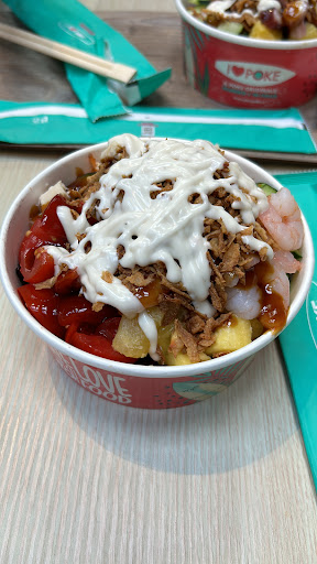 Read moreTralasciando quello che spendi, cifra spropositata per la qualità, la poke faceva pietà, un intruglio di ingredienti che proprio non mi è andato giù. Odio lasciare il cibo, ho provato a mangiarla a forza ma nel momento in cui ho visto la dipendente, con la maglia tutta sporca, che rimetteva le arachidi nei contenutori con le mani senza guanti e prima aveva preso i miei soldi mi sono alzato...