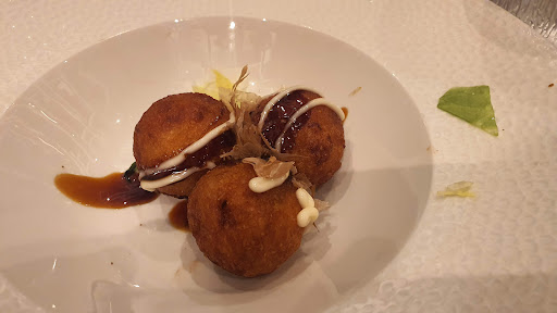 Locale grandissimo e luminoso, sedie molto strette, davvero troppo, ero incastrato e stando così scomodi si fatica a mangiare e godersi la serata. Come cibo ci sono delle differenze ampissime, cioè alcuni piatti come il sashimi di capasanta e tartarre di tonno con avocado e yuzu erano eccezionali altri invece estremamente deludenti come il riso alla Cantonese insapore e i tagoyaki (erano fritti con la crosticina!) con il polipo molto duro da masticare. Purtroppo non abbiamo preso molti piatti un po' per il tempo iniziale che abbiamo perso nello scegliere dal menù digitale in PDF scaricato sullo smartphone che in varie pagine segna i piatti, quelli davvero interessanti, come 1 solo a testa e non è chiaro se si intente per pagina o per categoria... e un po' perché ci hanno fatto fretta per liberare il tavolo o almeno quella era l'impressione che ci hanno dato. Hanno pure sbagliato un numero e invece che A4 mi è arrivato A1, branzino al posto dei gamberi rossi crudi che mi ispiravano. Ho fatto il bis dei gamberi in tempura ma 2 era solo tiepidini e solo 1 era bollente come ci si aspetta di solito. Chi serve ai tavoli non porta via i vuoti con solerzia e più volte arrivano con piatti di altri tavoli capendo solo un attimo prima di appoggiarli sui tavoli che era il tavolo sbagliato. Non c'è un vero ordine nel portare i piatti, il primo della lista è stato l'ultimo ad essere portato ad esempio. Quindi tirando le somme sembra che i piatti ordinabili 1 volta a testa siano di qualità mentre il resto è molto più andante, dovrei assaggiare più piatti per avere la conferma ma non c'è molta varietà di gusti come uramaki, osomaki ecc non c'è l'anguilla e il tamago e per il prezzo finale della cena con 3 euro per l'acqua del rubinetto filtrata sinceramente preferisco altri posti più umili, dove sono accomodato meglio e mi fanno sentire più tranquillo a mangiare con calma e godermi la serata. La ragazza italiana con i capelli magenta che ci ha servito è stata gentile, attenta al cliente e alle necessità fosse per lei ci...