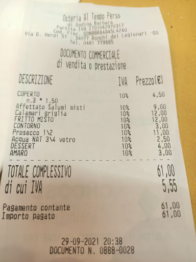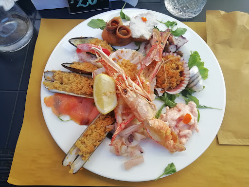Una stella. Anche troppo Carino come posto ma mai più. Aspettativa del cibo da come ci era stato consigliato risultata scadente. Il sarcasmo.e la.spiegazione da parte della cameriera di un cibo non buono e immangiabile l.ho trovata davvero ridicola e assurda.Si aspetta troppo per il.servizio.Al pagamento del conto nemmeno.le.scuse per non aver portato il piatto a tavola..Assurdo. Ma vogliamo parlare del secchio con acqua e presunto.detersivo x la.pulizia dei tavoli lasciato lì vicino ai menù..alle posate e alle varie ciotole con le salse e attaccato al tavolo dei.clienti??Due ore li E l 'acqua non è mai stata cambiata.. Trovato buono solo le patatine fritte e i calamari fritti..questo si. Ma il.primo piatto..decantato e consigliato..e non arrivato..?.anche no... E copriamoli i.dolci nel "frigo" che diventano brutti .e le.mosche nella.coppa.con l.auguria?? Mi dispiace che era il.nostro anniversario e il.pranzo nn e stato soddisfacente..Era.meglio.un semplice panino. Do una stella perché zero nn si può..E come.abbiamo.detto.all arriverderci della cameriera..anche no..non ci torneremo più e nemmeno lo.consigliamo. Si sta tanto x farsi la.cliemtela..e...