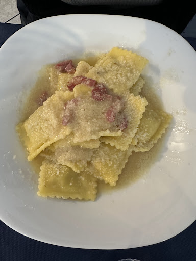 Abbiamo ordinato 4 primi (3 cacio e pepe e 1 pasta in bianco, pagata come gli altri). La cacio e pepe era immangiabile: grumi di un preparato già pronto, senza mantecatura, una presa in giro soprattutto per chi è romano e conosce davvero questo piatto. Inaccettabile. La pasta in bianco allo stesso prezzo degli altri primi è stata l’ennesima conferma della scarsa serietà.