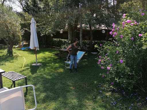 Read moreIl lago è bellissimo, mi aspettavo i tavoli proprio sulle sponde invece erano leggermente più dentro per cui mangiando non si vedeva il lago. Locale abbastanza spartano e datato, tavolo un po' traballante e un po' scomoda l'altezza del tavolo rispetto alle sedie ma pazienza. Nessuno del personale indossava la mascherina ma stavamo all'aperto. Il menu è semplice c'è poca scelta anche se sul web dice che ci sono scelte per vegetariani non è così: tagliatelle funghi e salsiccia, abbiamo chiesto se fosse possibile senza salsiccia (ci potrebbero essere mille motivi) ci è stato detto di no perché è un condimento già pronto (abbiamo pensato fosse preparato e poi surgelato). Abbiamo optato per ravioli di persico e tagliolini sempre al persico. Purtroppo deludenti, i primi a livello di una mensa scolastica. I ravioloni non scolati bene hanno annacquato il sughetto. La pasta era scotta e io che non mangio formaggi sentivo all'interno un sentore di grana o simili anche se nel menu non era specificato (poi col pesce,bho?). I taglionini anche loro un po scotti e sugo poco saporito. Molto delusi ci siamo però rirpesi con il filetto di persico fritto e una bella insalata, ci hanno portato un piatto abbondante che abbiamo diviso in due. Pesce fresco e frittura croccante e leggera. Ho preso anche una delizia al limone per dessert, molto buona. Non abbiamo preso vino perché astemi, nonostante l'iniziale velata insistenza della titolare che comunque non ha dato fastidio però ho notato, e capisco, che spingeva per farci prendere gli alcolici. Il conto onestissimo anche se ci hanno addebitato anche il servizio (ancora esiste?) 53euro in due senza vino mi pare ottimo. Aria fresca atmosfera tranquilla forse vale più la...