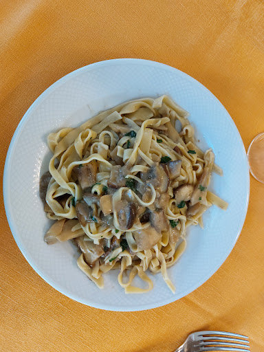 Siamo andati in questa osteria per la prima volta. Era bellissima, spaziosa e pulitissima. I tavoli erano coperti da tovaglie bianche. Abbiamo ordinato pasta con fagioli e filetto di manzo con funghi porcini e mezzo litro di vino della casa. La pasta era buona , ma il filetto di manzo era pieno di tendini impossibili da tagliare, separare dalla carne o mangiare. L'ho mostrato al cameriere, che si è scusato e si è offerto di rifare il piatto. Ha riportato lo stesso piatto immangiabile. Non ho mangiato nessuno dei due piatti che mi hanno portato. Il filetto di manzo che costa 25 euro non ha molti nervi. Ho restituito entrambi i piatti e sono rimasto affamato. Ho mangiato i funghi che erano sul filetto e l'ho restituito. Il cameriere si è scusato ancora e ha offerto un dessert per compensare l'errore dello chef e ha promesso di non includere né la carne né il dessert nel conto. Anche mio marito ha ordinato un dessert, che era delizioso. Non abbiamo ordinato altro. Alla fine, il conto è stato di 48 euro. Se consideriamo la promessa del cameriere di non includere nel conto né la mia carne immangiabile, che ho restituito, né il dessert, che era una sorpresa e in pratica il mio pranzo, allora non capisco come pasta e fagioli, mezzo litro di vino fatto in casa e un dessert di mio marito possano...