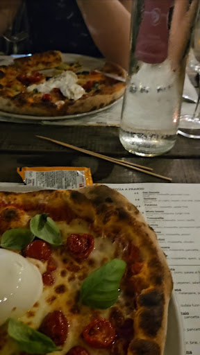 Read moreBel locale, pizza buona, ma...il cameriere !!!....Mamma mia, un muso lungo che non ti dico.. Arriviamo dentro, saluto (che dovrebbe essere il contrario) e non risponde! Ci sediamo e porta un solo menu, mia moglie ha appena scelto la pizza e arriva a prendere l'ordinazione, allora per non fargli fare la strada un'altra volta decido in fretta per una "capricciosa" due birre e le porta con le posate in mano a mò di mazzo di fiori tenendo birra e posate insieme.. Bah.. Beviamo un sorso di birra e.. Finalmente arrivano i tovaglioli.. Mi convinco che sia il titolare e gli affari stiano andando male.. "Visti i tempi", e penso.. "sarà stanco di questa situazione, però siamo clienti e non è il modo" !! Ma porto pazienza e vedo arrivare una signora sorridente con le nostre pizze!! Chiedo se il "cameriere" è il titolare. La signora, con modo garbato e gentile mi risponde di no. Poi con orgoglio riprende e mi dice "sono io la titolare" aggiungendo un grosso sorriso a quello preesistente. Allora tra me e me penso, non dico niente!!, ma.. Non è giusto (lavorando nel commerciale, meglio che il titolare sia a conoscenza di ciò che accade) nel frattempo lei mi chiede "perché??" Allora le rispondo semplicemente "l'ho visto stanco".. Ma.. Dico io, se non ti piace il tuo lavoro, perché non fai qualcos'altro?? peccato... Persi...
