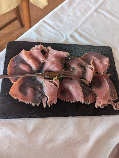 Food was great tasting. I stopped for a quick lunch after driving for a couple of hours. I was actually wanting to try their pizza, but they only serve that at dinner. Everything on the menu involved seafood, which is fine, but I wasn't really in the mood for it. But, I'd already sat down and they brought me water, so I had calamari and tuna carpaccio. The calamari was well breaded and just the right amount of seasoning and saltiness. The tuna carpaccio was fresh and slightly smokey, melted in the mouth. Wasn't what I was looking for when I stopped, but it was good. Was the afternoon, assume they were closing soon, restaurant was fairly empty and they had the tv blasting music videos so I could've done...