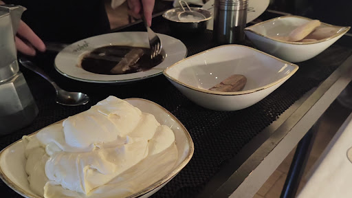 Read moreAltissimi e bassi. Nel senso che abbiamo trovato alcuni piatti molto molto buoni mentre altri così cosí. Ordinato maritozzo con tartare di carne: non ha convinto particolarmente non tanto per il contrasto caldo del pane e freddo della carne, i giochi sulle temperature mi piacciono, quanto per il pane, secondo me più che scaldato andava tostato per creare una croccantezza che avrebbe dato una consistenza più adeguata e il tipo di pane, un oan brioches, che poco aveva del "maritozzo". Non cattivo ma.....invece ottima la bistecca di Wagyu abruzzese, cotta perfettamente, saporita con l'attenzione del piatto sia per mangiare che di servizio caldo (ma non bollente cosa che odio perché prosegue la cottura). Molto bene anche le olive all'ascolana e gli altri antipasti. Buoni gli spaghetti arrosto (praticamente saltati) e ancora luci e ombre sui dolci. Uno dei migliori mangiati negli ultimi tempi lo zucchero filato con gelato al kefir e crumble con mandorle. Equilibratissimo e davvero superlativo. Invece scenografico ma non convincente il tiramisù. Lo compongono al tavolo, cosa molto bella, ma la crema é troppo troppo pannosa. E facendolo espresso non c'è quell'amalgama che a me piace nel tiramisù fatto da qualche ora. Savoiardi un po' troppo inzuppati insomma...alti e bassi. Servizio ottimo, tutti molto gentili, location molto bella. Nel complesso...