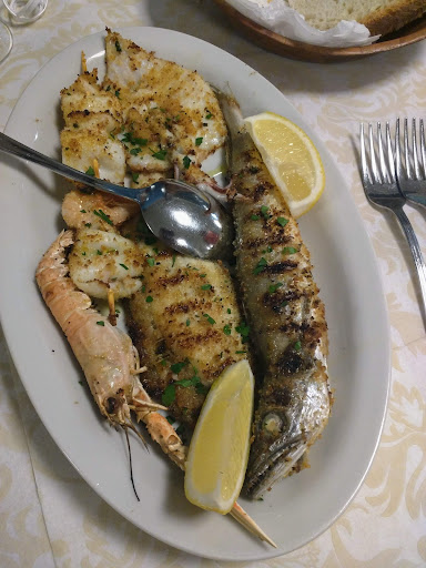 Il locale è vicino al lungomare Trento a Roseto, ma si deve parcheggiare dove possibile nella vicinanze (spesso con difficoltà). Dato che il locale è proprio sulla strada, da fuori non è facile notarlo, anche perché subito all'uscita di uno dei vari sottopassi ferroviari della città. Una volta dentro il ristorante, tuttavia, si nota subito l'elegante modernità dell'arredo e la cura dei dettagli. Il locale non è molto grande, quindi, è obbligatoria la prenotazione e la puntualità. Abbiamo mangiato un ottimo antipasto freddo e una eccellente grigliata di calamari accompagnata da verdura cruda fresca e croccante. Per finire, segnalo la Crema catalana a conclusione di un ottima cena e segnalo inoltre la possibilità di avere vino in bottiglia bianco o rosato in formato da 0,375 litri, adatto a chi come noi non beve litri di vino, che al costo di 5€ si adatta perfettamente al costo complessivo e alla qualità del pesce e...