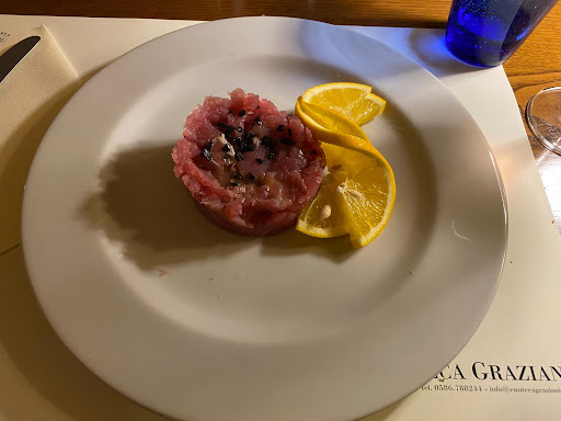Se da Vada si va verso Rosignano consiglio la sosta alla Enoteca Graziani. Veramente anche se non è di strada il mio suggerimento è di andarci, perché antiche scuderie sono state splendidamente adattate al il tipico ristorante d'antan. Ottimo il menu e ampia la scelta dei vini. Squisito il sevizio, impeccabile ma informale. C'è anche una fresca veranda esterna se la serata fosse particolarmente calda. Ho cenato con mia moglie diverse sere in quanto ho alloggiato nell'attigua Villa Graziani provando diversi piatti e trovandoli ben cucinati e serviti. Il Vermentino la fa da padrone fra i bianchi e i vari Bolgheri riempiono la scelta dei rossi; trovano spazio un paio di rosati e alcuni prosecco. Il prezzo è adeguato alla qualità. Da segnalare la tipologia dei tagli di pasta, prodotta nell'agriturismo che completa...