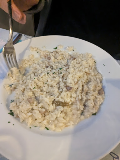 Last but not least: the food. The bread was old and didn’t taste good, the salad was brownish and the only thing that tasted fresh were the red onions. The riso con funghi porcini... maybe it wasn’t called risotto because it was not very much like a proper risotto, the rice was not even done and far too hard, as well as the porcini “fresh from the freezer”. Furthermore, considering the restaurant being located 50 m from the sea, frozen scampi are not what you expect,...