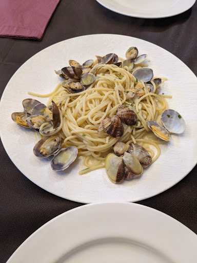 Read moreNach den Bildern und Rezensionen hier hatte ich tatsächlich mehr erwartet. Wir hatten Muscheln als Vorspeise, diesen würde ich 5 Sterne geben. Das "Filet vom Rind" hat wenig mit Filet zu tun, eher ein viel zu dünn geschnittenes, zu lange gebratenes Rinderkotelett, 2 Sterne, weil das Fleisch trotzdem nicht wie eine Schuhsohle geschmeckt hat. Die "gemischten Schalentiere vom Grill" waren Gambas und Crevetten ... Geschmack gut, "gemischte" irgendwie enttäuschend da habe ich andere Assoziationen, und insgesamt "nur" 6 Stück, machen mich auch nicht satt. Spaghetti allo Scoglio ... Das beste Gericht, das wir hatten! Reichlich Auswahl verschiedener Meeresfrüchte, gut gewürzt und zum...