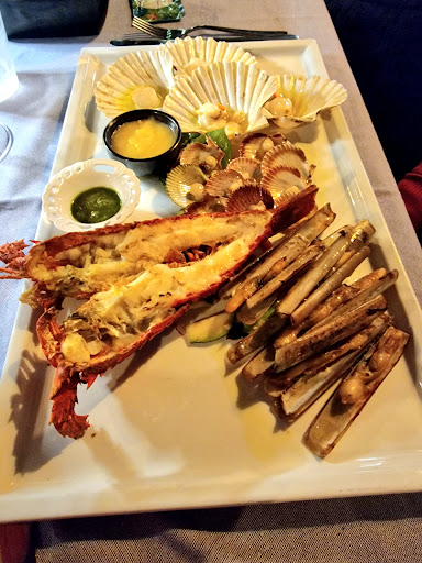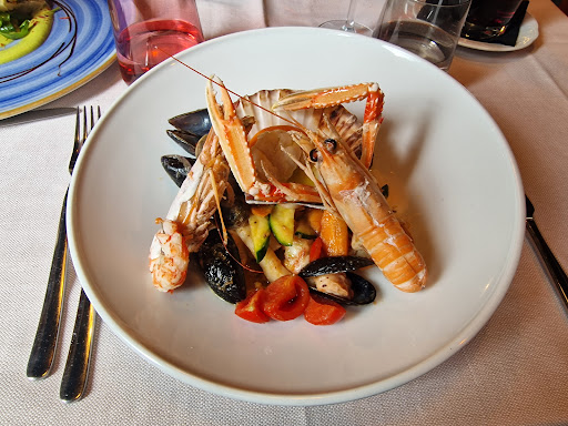 Read moreRecensione relativa al solo ristorante: Cena di venerdì sera. Locale buio e pieno di oggetti, troppo carico, lampade da tavolo piene di polvere. Insalata di mare, la peggiore della mia vita. Tutto mescolato in una terrina tonda, non si potevano distinguere bene le qualità di crostacei, tranne lo scampo e la capa santa appoggiati sopra. Ma la cosa peggiore è che era calda, compresa la verdura cruda tagliata dentro, con il fondo una cremina non ben definita. Fusilloni con ricciola e ombrina, 7 fusilloni sconditi poggiati sopra un sugo di 3 capperi, pezzettini di pomodoro, pochi pezzettini di pesce e una salsina verde. Insipido e appunto scondito. Ho assaggiato un agnolotti gamberi, tartufo e zucca e sembrava quelli che mi faccio io in casa con le creme al tartufo preparate. Nel gruppo sono stati presi due crudi di mare, 35 euro per il pesce che c'era nel piatto è veramente un furto, tra l'altro il crudo è un pesce abbattuto e impiattato, non c'è nemmeno la fatica di cucinarlo, il fatto che costi il doppio di un altro antipasto è veramente una presa in giro. I dolci buoni, ho assaggiato il tiramisù e io ho preso una Pavlova ma per 7 euro non me la puoi portare in un vasetto del pomodoro. Prezzi decisamente troppo alti per la qualità e per la quantità del prodotto. Il vino che di solito prendiamo anche in altri ristoranti e che paghiamo 18 euro, qui ci è costato 22. Gli amari o liquirizie che di solito vengono offerti a fine pasto lì abbiamo pagati 5 euro cadauno. Ma in tutto questo, nonostante non mi piacesse quello che ho preso, per fame l'ho mangiato tutto, assieme ad un cestino di pane e ora sono le 5 del mattino e sono seduta sul water. Qualcosa è andata storta. Locale non...
