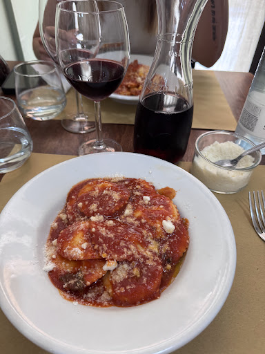 We came for lunch with our 1.5-year-old son and were warmly welcomed and immediately shown to a table. A baby chair was proactively provided, and the staff were incredibly friendly, attentive, and spoke excellent English. We ordered three pasta dishes, all full of flavor and beautifully prepared. The Black Angus steak was perfectly cooked medium rare, and the chocolate pistachio dessert paired with espresso was a dream. Great value for money. Food was served on proper dishes with silverware and glasses — minimal waste, though the espresso came in a disposable cup (a real cup would be even better!). Highly recommended — we’ll definitely try to come back...