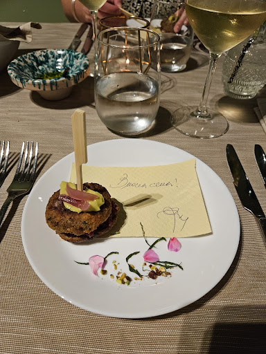 Read moreUn esperimento riuscito, quello di mettersi nelle mani di Giuseppe, lo chef che, in questo piccolo ristorante di Rosolini, costruisce un menù sorprendente con prodotti freschissimi, comprati proprio per te. Ci si affida a lui, non alla carta che, di fatto, non c'è. Ed è un percorso che si scopre pian piano tra sapori e profumi dell'isola. Giuseppe è un autore che osa pure usando una lingua già nota. Perché la tradizione emerge da ogni portata, ma ci appare con un volto trasfigurato. Lui, gentilissimo, ti presenta ogni piatto e, al bisogno, sa consigliarti la bottiglia giusta (per noi un ottimo chardonnay delle terre di Noto). E così, a fine percorso, ho particolarmente apprezzato il suo brindisi in nostra compagnia con un vino alla mandorla amara assemblato da lui stesso. Il prezzo è adeguato alla proposta. Complimenti, Giuseppe, da ieri uno dei miei poeti preferiti.