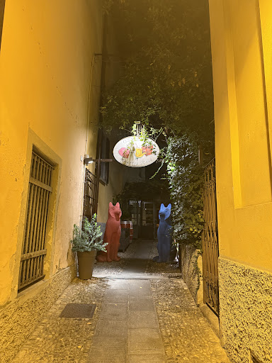 Posto caratteristico dentro, bellissime le illustrazioni all'interno. Esternamente è molto gradevole. Il personale è davvero gentile, ti mette a tuo agio ed è molto professionale. La scelta dei vini è superlativa,ci hanno consigliato un Ribolla berlucchi per l'antipasto e per i secondi un rosso (forse principe martini, ma non ne sono sicura),in ogni caso tutti azzeccati e di ottima qualità. Il servizio è veloce, ottimi i tempi tra una portata e l'altra. Non per ultimo menziono il cibo, perché è stato davvero qualcosa di incredibile,delizioso,profumato,ricercato!. Ero già venuta una volta qualche tempo fa ed ero rimasta particolarmente stupita. Adesso che siamo riandati,non posso che riconfermare la qualità e la quantità ottima di cibo!. L'antipasto è fresco, con salumi artigianali di ottima qualità, salame, mortadella,coppa, prosciutto crudo, la giardiniera fatta in casa, le cipolle caramellate, tutto squisito. Persino il pane ed i grissini sono buonissimi. Come primi abbiamo preso i casoncelli(a parer mio,una delle cose più buone che abbia mai mangiato) e il risotto Francia corta con tartufo (il tartufo non era di qualità eccellente,ma andava comunque bene). I secondi erano morbidi e saporiti,la carne si scioglieva in bocca. Plauso speciale al guanciale al brasato, ma il manzo all'olio ed i lombini non erano da meno. Anche i contorni sono stati squisiti, polenta ben soda e patate al forno speziate. Mi spiace non essere riuscita a prendere il dolce. Ma il cameriere è stato così gentile da accompagnare il caffè con della sbrisolona rustica, davvero buona. Un altro plauso al cameriere, che ci ha trattato benissimo durante tutto il servizio e alla fine ci ha fatto anche assaggiare la crosta della polenta (anche quella buonissima). Il conto è stato super onesto, siamo andati a mangiare in 6 e abbiamo pagato circa 55€ a persona, tutti meritati e ci hanno fatto persino uno sconto di 17€ totali!...