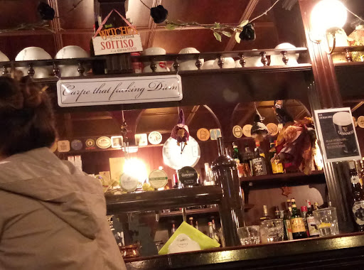 Read moreÈ un piccolo locale caratteristico, nello stile classico delle birreria - con il bancone e gli arredi in legno massiccio scuro - ma reso particolare dal fatto al suo interno ci sono moltissime streghe e streghette in miniatura, di varie fogge e taglie, proprio a richiamare il nome sull'insegna. Il nome, immagino, scaturisce da un pizzico di autoironia delle gestrici del locale che non a caso sono tutte di genere femminile... Che guarda caso sono anch'esse dello stesso genere. Ho solo bevuto una birra e quindi non posso esprimermi sui piatti che...