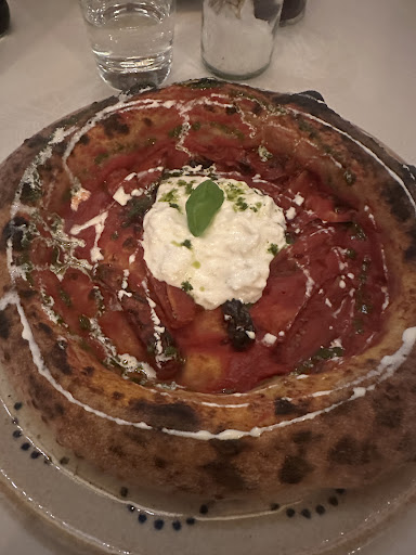 Read moreLocale trovato per caso, abbiamo prenotato all'ultimo e abbiamo trovato posto. Locale sulla strada, ma con piccolo parcheggio al di fuori gratuito non essendo in centro. Accoglienza quasi assente, quando siamo entrati non ci hanno chiesto se volessimo un tavolo o se avessimo giá prenotato e all'entrata una delle due ragazze non ha nemmeno salutato. 3,50€ di coperto, ma sul tavolo non troverete grissini o pane. Abbiamo ordinato acqua e una birra (8,50€ x 33cl) e ci avevano portato un bicchiere solo per l'acqua e uno solo per la birra che dovevamo dividere..Piccolezze che con questi prezzi uno ci guarda. Nessuno ci ha spiegato il menù, che non riuscivamo a capire ..e quando ce lo hanno spiegato, anche dopo, non é che fosse molto chiaro..Le pizze vanno dai 14 € in su per una margherita e dai 22 piú o meno tutte le altre, penso siano tutte pizze gourmet.. con i ingredienti particolari, ma i piu richiesti o normali non li troverai. Nel complesso l'impasto sembrava buono, alto come piace a noi, purtroppo all'interno la mia pizza era bagnata ed essendo con un interno cosi sottile si era sciolta. Quella del mio ragazzo nel complesso gli é piaciuta e non era bagnata. Dato che non sono tanto farcite, 24€ una pizza ci sembrano tanti. Menú composto di sole pizze o una scelta iniziale di bruschette a 15€ con 3 bruschette. Non c'erano tanti tavoli ed il servizio é stato veloce. Alla fine non hanno chiesto se volessimo altro e al momento del pagamento non hanno offerto niente. La birra era buona