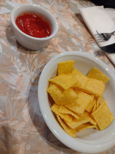 Ci si sente un po' come a casa, sempre ben accolti e sempre come momento di accoglienza viene servito ai tavoli una ciottolina di Chips e salsina al pomodoro.