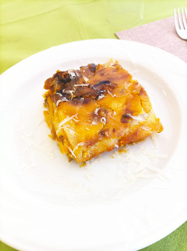 Locale accogliente. Personale gentile e disponibile . Vasta scelta nelle proposte del menù a prezzo fisso con portate genuine, abbondanti e ricercate. Lasagne con ottima pasta di loro produzione. Ampio parcheggio con albergo e possibilità di docce per i camionisti di passaggio in posizione comoda all'autostrada e Transpolesana. C'ero già stata un anno fa e la titolare se ne è ricordata.( attenzione per il cliente). Da provare.