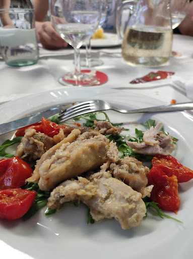 Read moreLa madre di tutte le ricette è la semplicità. Se cercate un posto dove si mangia bene, specialmente a pranzo (perché è a pranzo che li ho conosciuti), guardate quanto pieno è il parcheggio... Lui è Umberto (Berto per gli amici), uno dei fratelli proprietari, 40 anni di cuoco, ora in pensione, ed è il primo che ti accoglie, sul piazzale, togliendoti il disturbo di cercare un posto per l'auto. Poi entri e trovi un ambiente quasi familiare, alla mano, come entrare in casa di gente comune. Nulla di ricercato, di sofisticato. Anzi, tutto funzionale ed essenziale. Perché qua ci si viene a mangiare, non a fare bella mostra di sé, con la cucina ultrastellata, piatti artistici per palati così fini da non capire più nemmeno cosa c'è nel piatto e vantarsi dopo di dove si è stati. No qui si mangia come si parla e si parla come si mangia. Ricette semplici, quelle di sempre. Perché qui a mangiare si ferma la gente comune, quella autentica, quella che lavora. Quella gente che, siccome a lavorare sputa fuori l'anima, almeno a tavola ha bisogno del conforto dei sapori veri e genuini. E qui tutto questo non manca, anzi... Infatti chi si ferma qua, poi uscendo ha la decenza anche di ringraziare, usanza che al giorno d'oggi non è più...