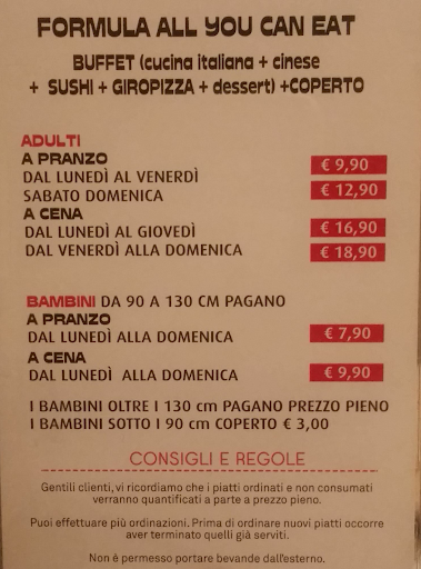 Che dire , bel posto , molto accogliente (c'è addirittura l'usciere che ti apre la porta)! Neanche il tempo di sedersi e ci servono un trancio di salmone alla griglia , non hanno il palmare a dimostrazione del fatto che non è indispensabile per essere veloci , difatti dopo cinque minuti ci chiedono cosa vogliamo bere e dopo alcuni minuti ordiniamo. (Non esagerate perché ciò che non mangiate lo pagate a prezzo pieno)! Tutto compreso a parte le bevande meno di venti euro. Buona la qualità dei piatti , servizio cortese e degno di un re anche se l'ho trovato troppo distante per i miei gusti ( manca quel pizzico di ruffianeria tipico dei camerieri di una volta) . In ultimo il conto che ha riservato una piccola sorpresa degna di nota quando, ritenuto il personale degno di merito , ho lasciato la mancia al che è partito un coro di Grazie degno della Scala di Milano che mi ha invogliato a lasciare un pensiero anche la prossima volta solo per sentire quell'unisono di voci!...