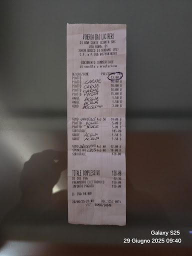 Ieri sera con degli amici siamo andati a farci un aperitivo in questo locale, dopo l'aperitivo abbiamo deciso di mangiare qualcosa e cosi abbiamo cenato. Quando abbiamo chiesto il conto, il cassiere ci ha fatto il conto con la calcolatrice e ci dice il conto è 138 euro, senza nemmeno farci lo scontrino o un preconto per verificare quello che avevamo preso, quindi io gli ho detto se gentilmente poteva farci lo scontrino con il dettaglio perche mi sembrava un pò eccessivo, allora sono andati in crisi perché non si trovavano con il dettaglio e continuavano a discutere tra di loro, ma dopo molto tempo malvolentieri e dopo tante scuse lo hanno fatto e abbiamo scoperto il perché non volevano fare lo scontrino perché il conto da 138 euro è diventato 136 euro e in piu abbiamo visto che avevano messo un piatto in più da 12 euro che non avevamo mai preso! Quindi su un conto da 138 euro ci avevano fregato 15 euro. Pertanto attenzione a questi signori che sono abituati a fare i conti con la calcolatrice a modo loro e sfruttare la buona fede dei clienti. Questo mi dispiace perchè il posto è spartano ma carino, il personale gentile ed...
