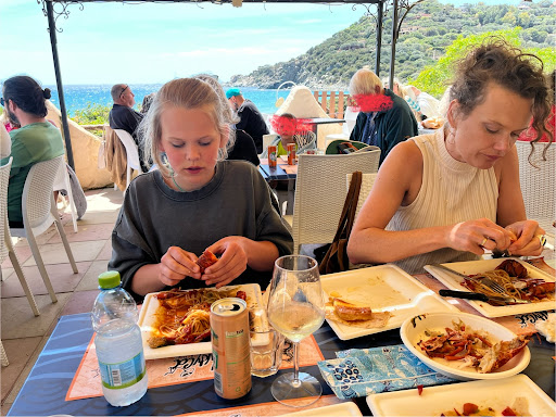 Read moreEsperienza pessima in tutto . Proprio stasera alloggiando a solanas cerco un ristorantino di pesce in zona e m'inbatto in questo ristorante,al telefono specifico che siamo in 4 di cui uno il mio fratellino disabile in sedia a rotelle... Chiedo se ci sono scalini o se è difficile arrivare da loro e mi dicono solamente che ci sono due scalini, quindi decido di prenotare. Arrivati ci accorgiamo che dobbiamo lasciare l'auto a 200 metri perché non si può arrivare in auto al ristorante...e già li ... La cosa più assurda che gli ultimi 30mt sono solo di Sabbia quindi per una persona in sedia a rotelle è un vero problema, con mio fratello decidiamo di posare la sedie e provare a fare quei 30mt piano piano facendolo appoggiare a me. Ovviamente nessuno del personale vedendo una donna in difficoltà con un disabile si è posto il problema di aiutarci, lo ha fatto un cliente che ha visto la scena.ci accomodiamo finalmente in tavoli e sedie da trattoria ma con prezzi da 2 stelle Michelin. Facciamo un unico ordine con della zuppa di cozze un trancio di tonno e due primi.arrivano le cozze arriva il tonno e aspetta aspetta niente nessuna ombra dei primi ...passa il cameriere che ci ha preso l'ordine e gli chiedo scusa i primi ? E lui signora non mi ha ordinato nessun primo..sorrido lo guardo " sta scherzando vero ?" Le ho anche detto che poteva portare tutto assieme e lei mi ha risposto " primi e anche le cozze?. Così va via dicendo che la colpa era della cameriera... vabbè a quel punto pazientiamo e dopo 20 minuti arriva un primo .... Uhmmmm è l'altro chiedo ? Si si arriva mi risponde sempre lo stesso cameriere...10..20...30 minuti e nulla il mio primo sparito.ok lo chiamo e dico guardi annullo il mio ordine,anche perché gli altri sono ormai al dolce.morale della favola dopo 2 minuti arriva il mio piatto....freddo pasta cruda insomma l'ho dato al mio cagnolino almeno ho fatto felice lui. Premetto piatti di carta idem tovaglie.... 50 euro a testa !!! Ho messo una stella perché non potevo mettere meno 10!!!...
